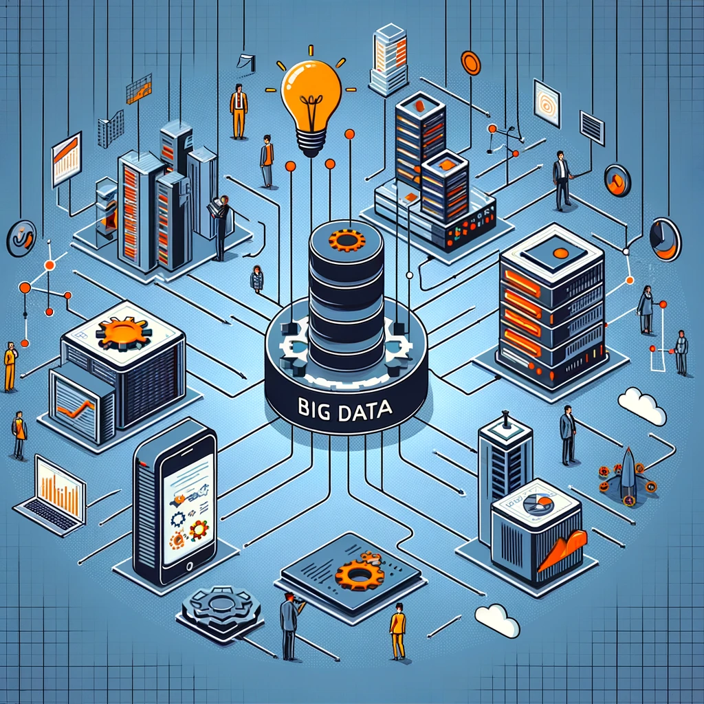 이제 빅데이터 관련 이미지 두 개를 보여드리겠습니다. 첫 번째 이미지는 빅데이터의 개념을 나타내는 일러스트레이션, 두 번째 이미지는 빅데이터의 기술 구성요소를 보여줍니다.